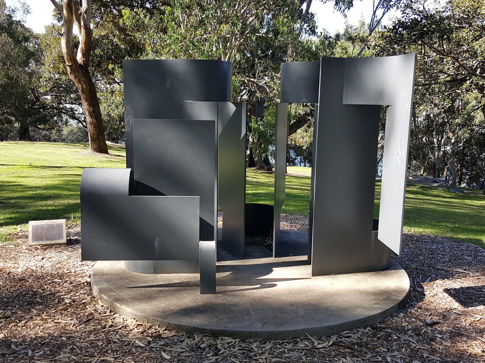"Paradiegma Metaphysic" is an art installation by Paul Selwood located beside Mrs Macquaries Road at The Domain, just outside the Royal Botanic Gardens. This sculpture was the winner of the major prize at Sculpture by the Sea in Sydney in 2011 and is part of a scheme to display the winners of that competition in the Botanic Gardens or adjoining Domain for ten years before being moved on to other public gardens.