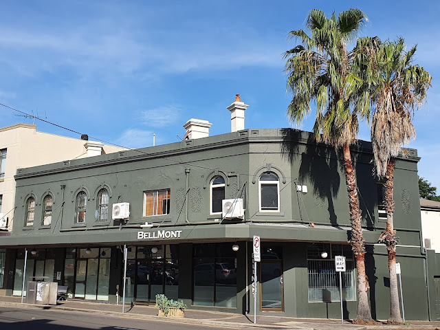 This row of shops is located on the corner of New Canterbury Road and Maria Street, in the inner west suburb of Petersham. The facade of the building features some surviving elements of decorative mouldings and floral imprints.